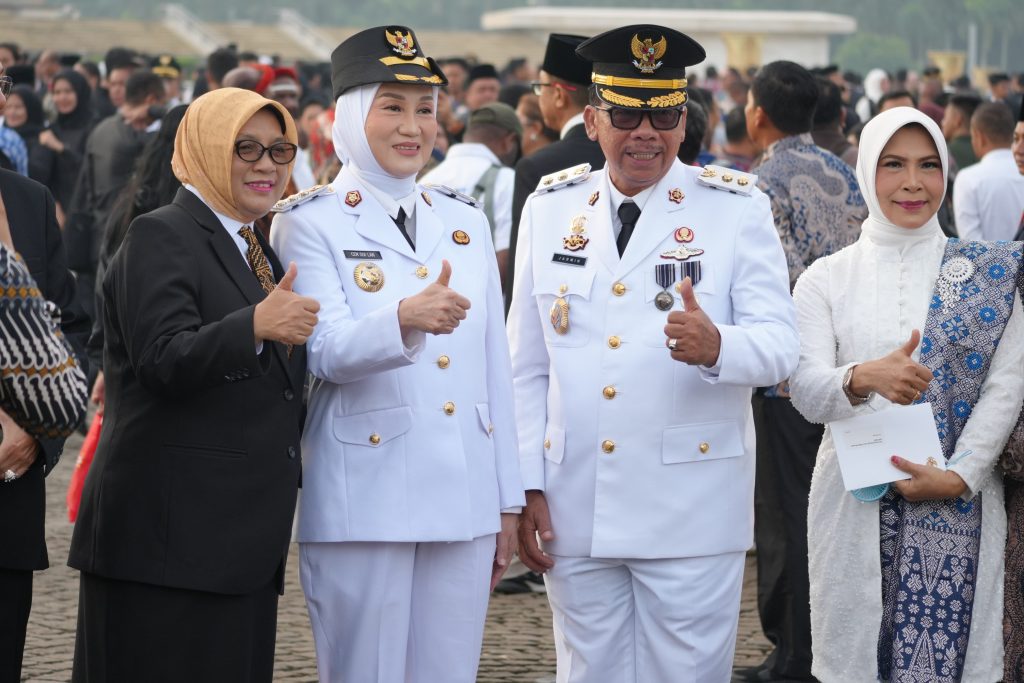 Pasangan Bupati dan Wakil Bupati Natuna terpilih Cen Sui Lan dan Jarmin Sidik dilantik oleh Presiden Republik Indonesia Prabowo Subianto periode 2025-2030 di Istana Kepresidenan, Jakarta Pusat, Kamis (20/2/2025). Acara pelantikan ini diikuti 961 orang kepala daerah dan wakilnya yang menang pada pemilu 2024.