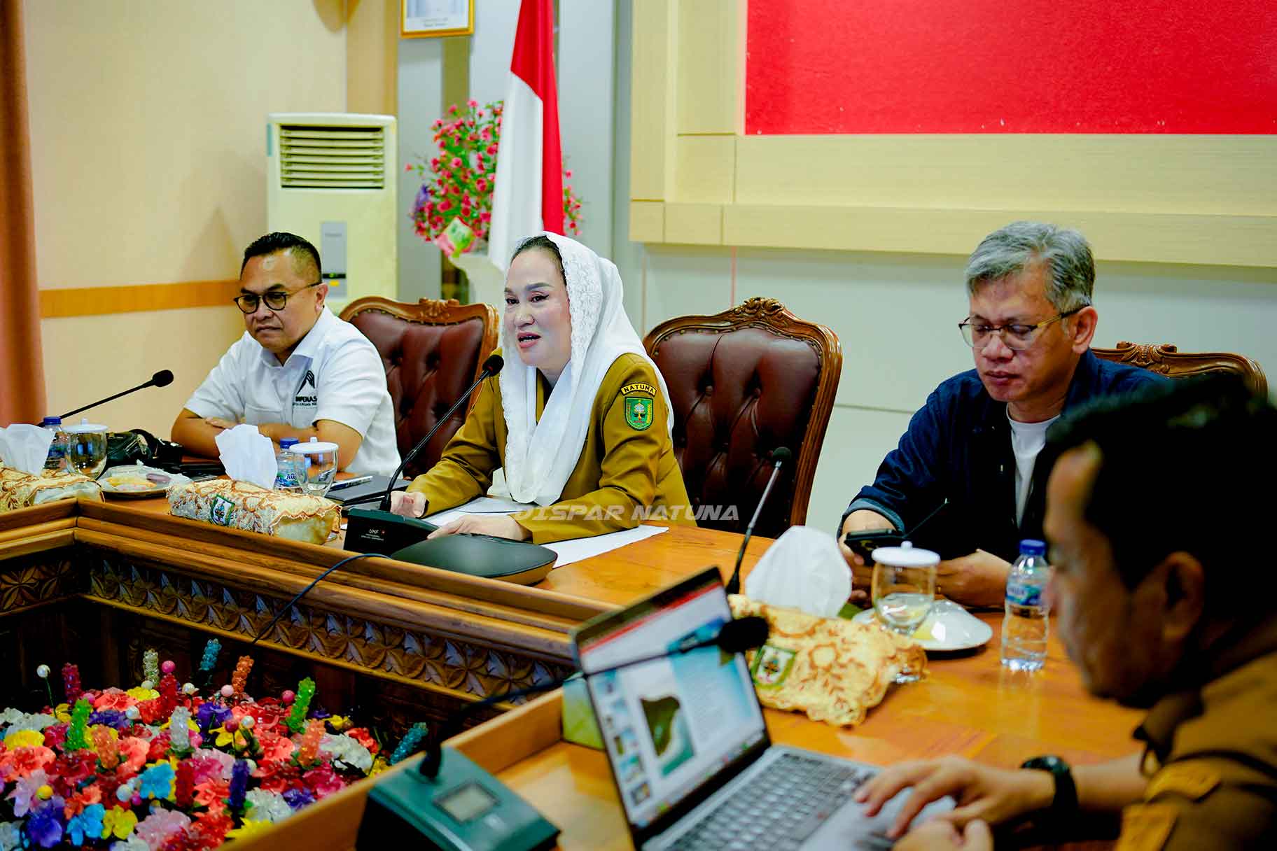 Hadir dalam rapat yang dimulai pukul 9.00 wib di Gedung Serbaguna Kompleks Masjid Agung Natuna tersebut diantaranya adalah Kadisparbud Natuna beserta Staf, Sekretaris Dinas Pariwisata Provinsi, Wakapolres, Danramil, Basarnas, Imigrasi, TNI AL, Kadis Kesehatan, Syahbandar, Camat Bunguran Timur Laut, RAPI, Dinas Perhubungan, Satpol PP, Kelompok Nelayan, Desa, dan Pokdarwis serta Media.